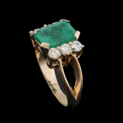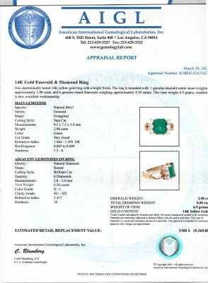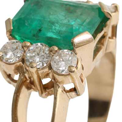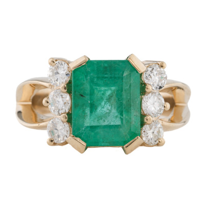 Emerald and Diamond ring with octagonal step cut Natural Emerald of 2.98ct and round Natural Diamonds totalling 0.50ct (FSA estimated grading: H-I SI-P1). 14ct yellow gold. Ring size L3/4. Width: 2.1mm - 4.1mm. Weight: 6.9g. With AIGL Appraisal Report dated 26/03/2025.