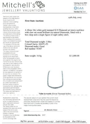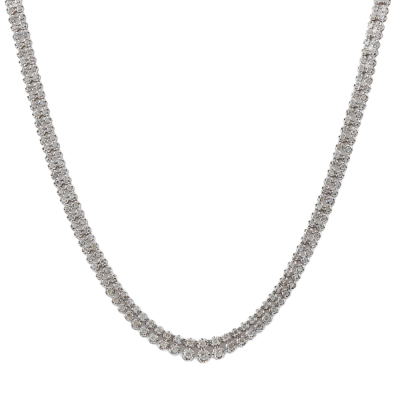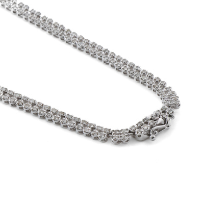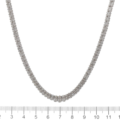 Double-row Diamond necklace with round Natural Diamonds totalling 3.00ct (Estimated grading: HIJ P1-P3). 18ct white gold. Inner circumference: 40cm. Weight: 16.8g. With Certificate #421109. (Pre-owned)