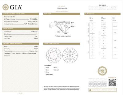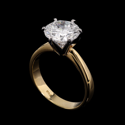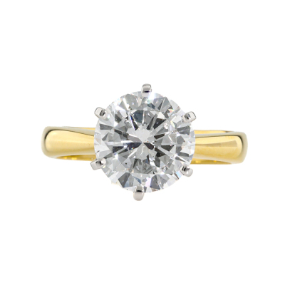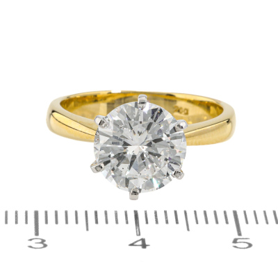 Diamond solitaire ring with round brilliant cut Natural Diamond of 3.00ct (with GIA Report graded as D SI2 #7511043844). 18 yellow and white gold. Ring size M. Band width: 3.5mm - 2.6mm. Weight: 5.1g. (Pre-owned)