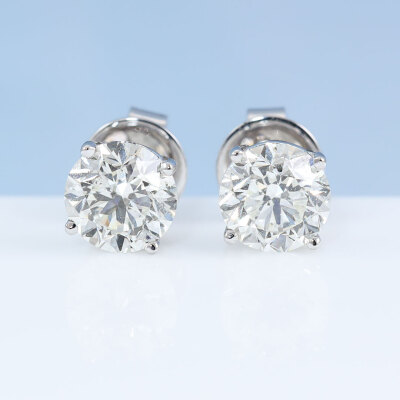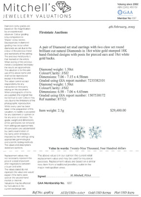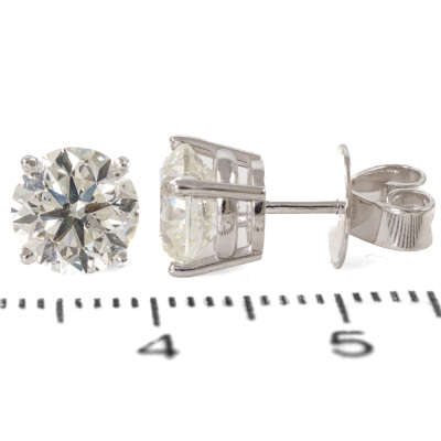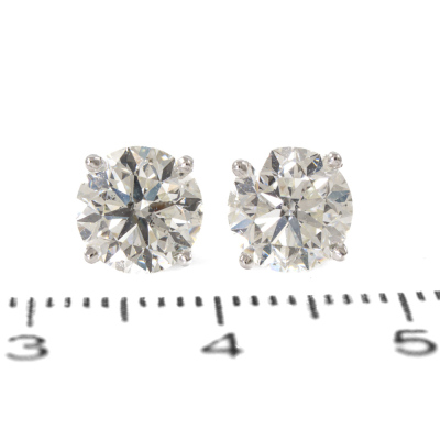 Diamond stud earrings with 2 round brilliant cut Natural Diamonds totalling 3.00ct (with GIA Reports graded as J SI2 #7235382101, 1507538172). 18ct white gold. Weight: 2.5g. With Valuation Certificate. (New)