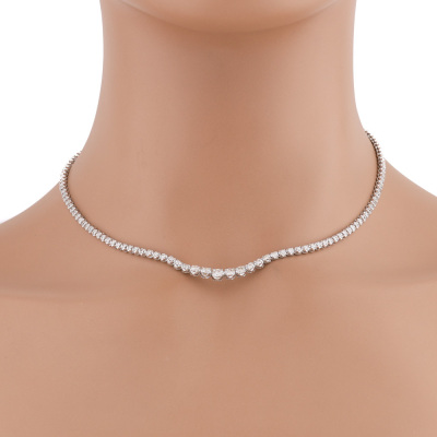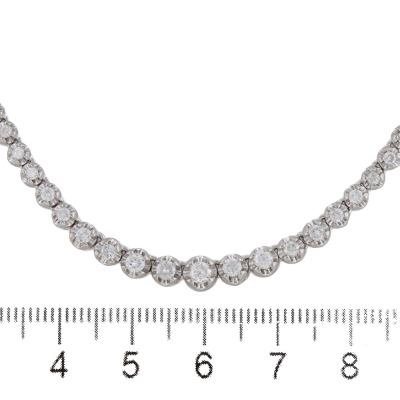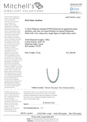 Diamond tennis necklace with round Natural Diamonds totalling 3.00ct (Estimated grading: H-I P1-P3). Platinum 950. Length: 43cm. Weight: 24.2g. With Valuation Certificate #421801. (Pre-owned)
