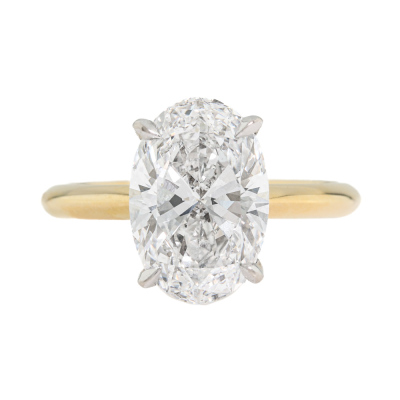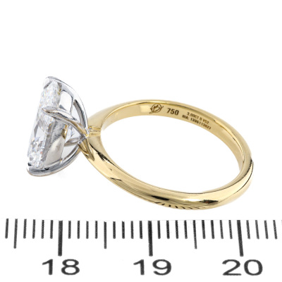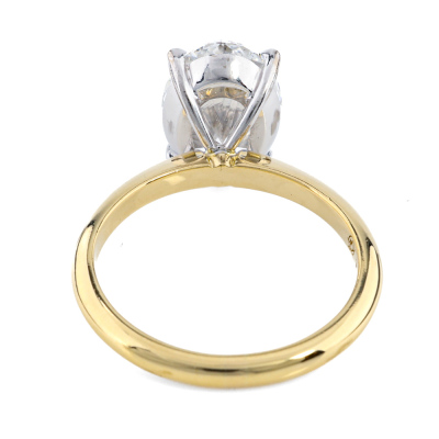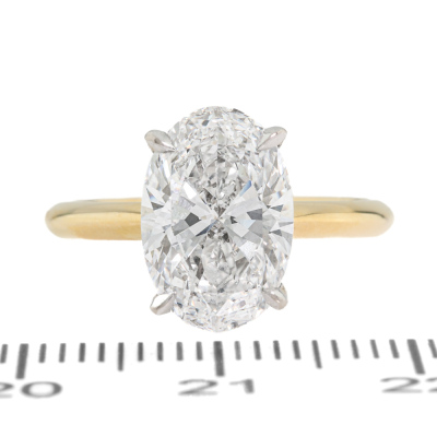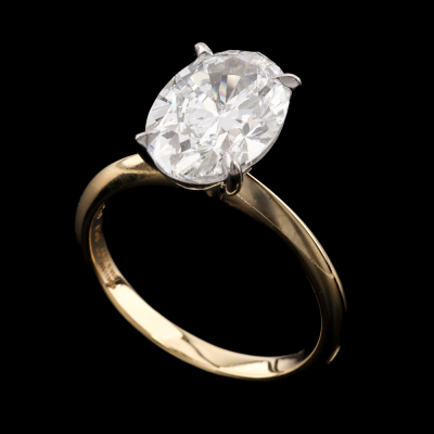 Diamond solitaire engagement ring with an oval brilliant cut Natural Diamond of 3.00ct (with GIA report graded as D VS2 #1395113627). 18ct yellow and white gold. Ring size L. Band width: 2.0mm - 2.2mm. Weight: 1.8g. (Pre-owned)