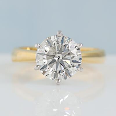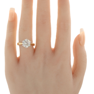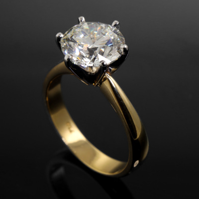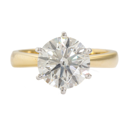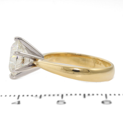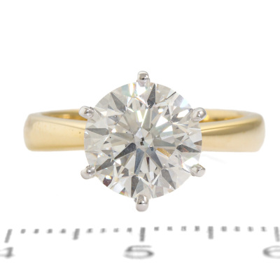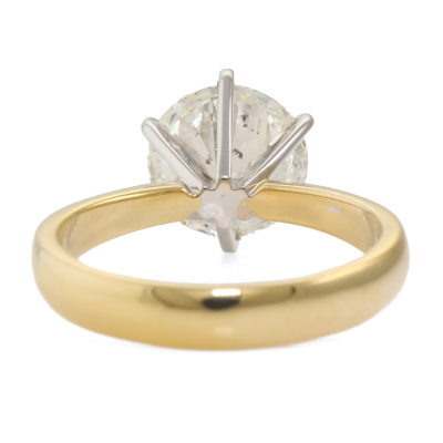 Diamond solitaire ring with round brilliant cut Natural Diamond of 3.01ct (with GIA Report graded as J SI2 #7506261386 ). 18 yellow and white gold. Ring size M. Band width: 3.5mm -2.8mm. Weight: 5.0g. (New)