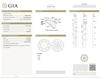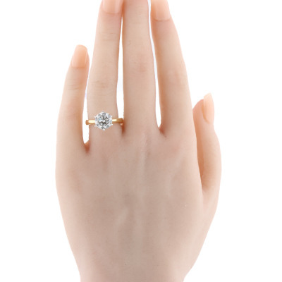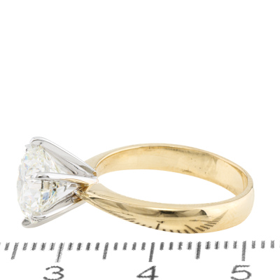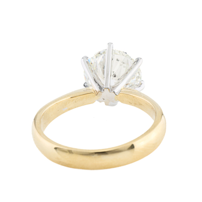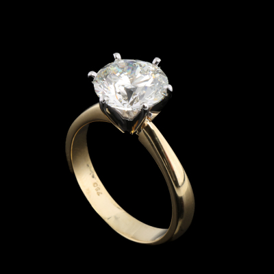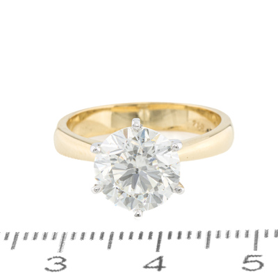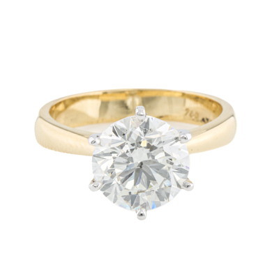 Diamond solitaire ring with round brilliant cut Natural Diamond of 3.01ct (with GIA Report graded as J SI2 #7506261386 ). 18 yellow and white gold. Ring size M. Band width: 3.5mm - 2.8mm. Weight: 5.0g. (Pre-owned)