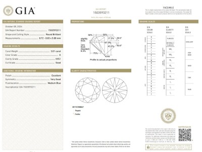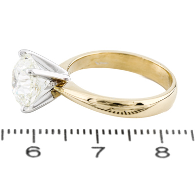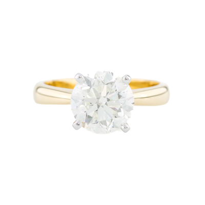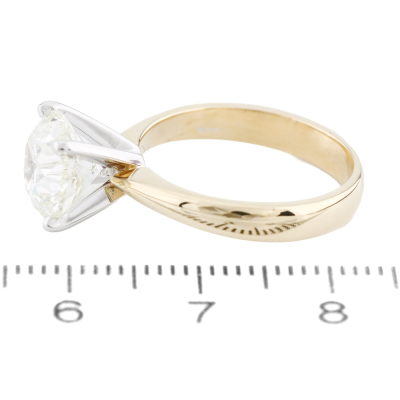 Diamond solitaire ring with round brilliant cut Natural Diamond of 3.01ct (with GIA Report graded as K VVS1 #1503593211). 18ct yellow and white gold. Ring size M. Band width: 3.3mm - 3.0mm. Weight: 5.0g. (Pre-owned)