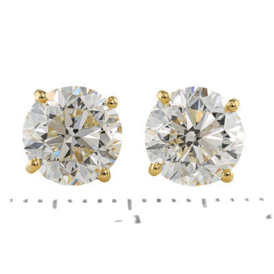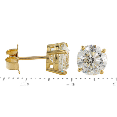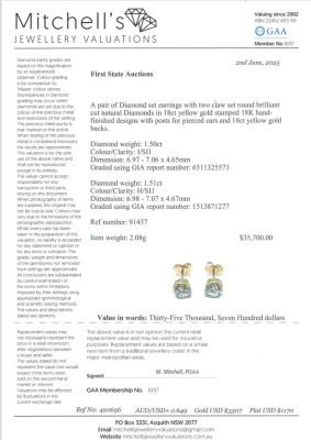 Diamond stud earrings with 2 round brilliant cut Natural Diamonds totalling 3.01ct (with GIA Reports graded as H SI1 #1513871277 & I SI1 #6511325573). 18ct yellow gold. Weight: 2.0g. With Valuation Certificate #420656. (Pre-owned)