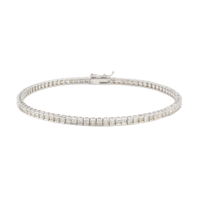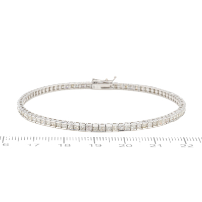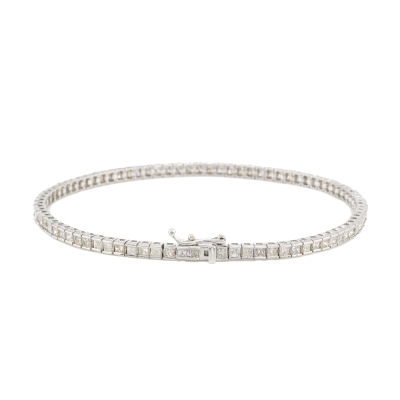 Diamond tennis bracelet with princess cut Natural Diamonds totalling 3.01ct (Estimated grading: IJK P1). 18ct white gold. Length: 18.3cm. Weight: 6.9g. (Pre-owned)