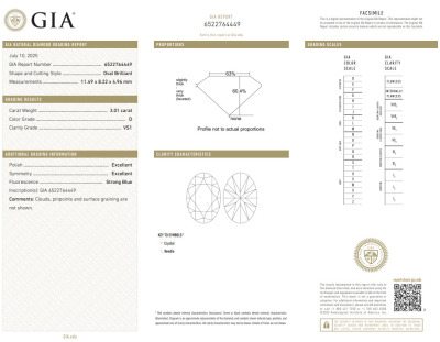 A loose oval shape natural Diamond of 3.01ct (with GIA report graded as D VS1 #6522764449). (New)