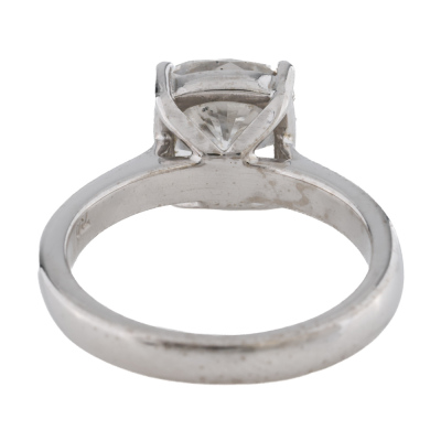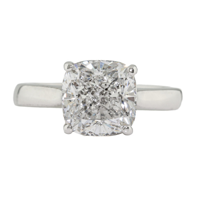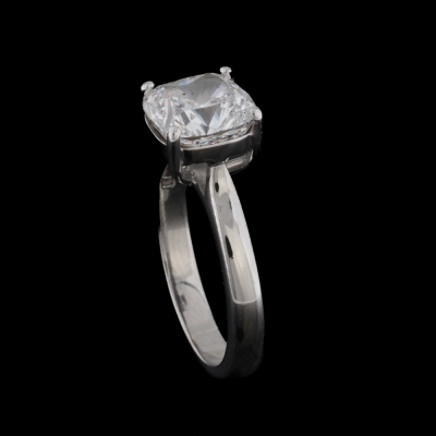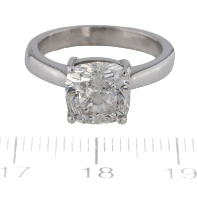 Diamond solitaire ring with cushion cut Natural Diamond of 3.03ct (with copy of GIA report graded as E SI2 #5151266105). 18ct white gold. Band width: 2.9mm - 2.7mm
