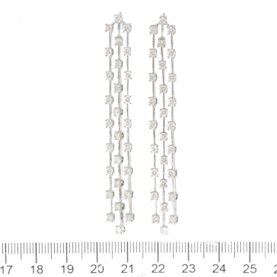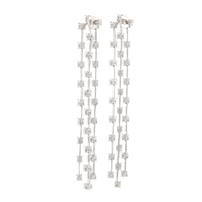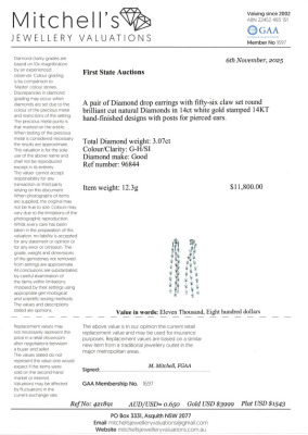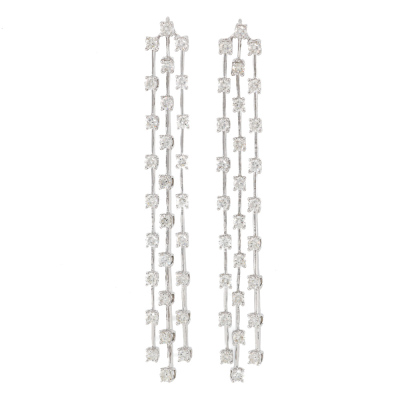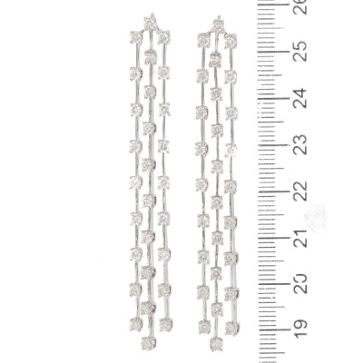 Diamond dress earrings with 56 round Diamonds totalling 3.07ct (Estimated grading: G-H SI). 14ct white gold. Length: 7cm. Weight: 12.3g. With Valuation Certificate #421891.