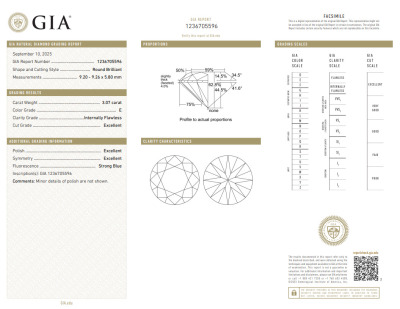 3.07ct Loose Round Diamond GIA E IF
