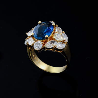 3.26ct Sapphire & 2.65ct Diamond Ring 18ct Gold