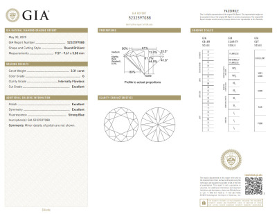A loose round brilliant cut natural Diamond of 3.31ct (with GIA report graded as G Internally Flawless #5232597088). (New)