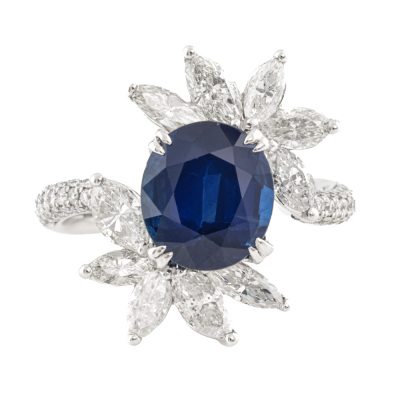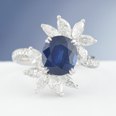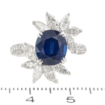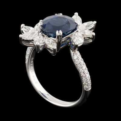 3.41ct Blue Sapphire & 1.69ct Diamond Ring