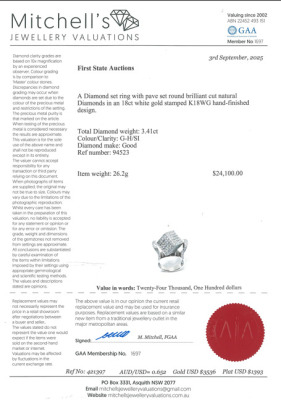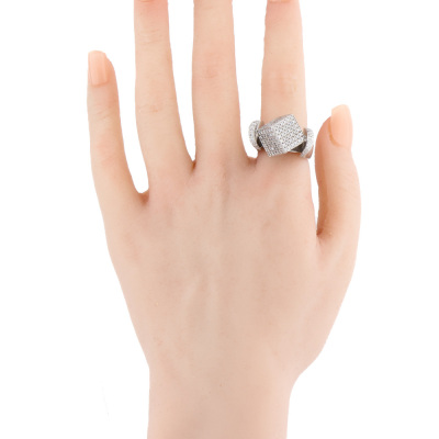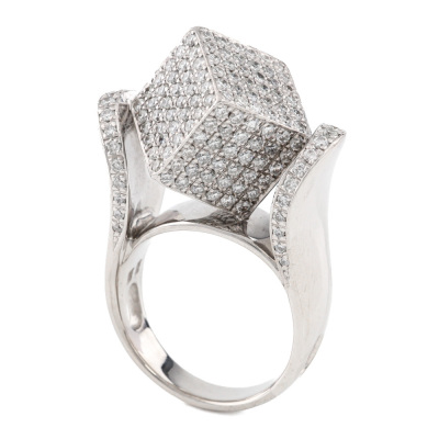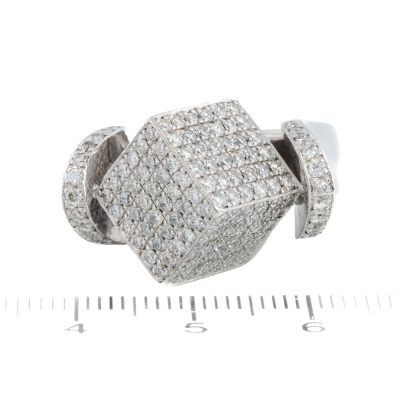 Cube design Diamond dress ring with round Natural Diamonds totalling 3.41ct (Estimated grading: G-H SI). 18ct white gold. Ring size N. Band width: 4.1mm-8.5mm. Weight: 26.2g. With Valuation Certificate #421397.