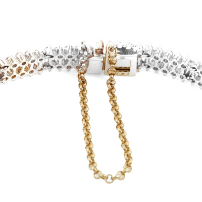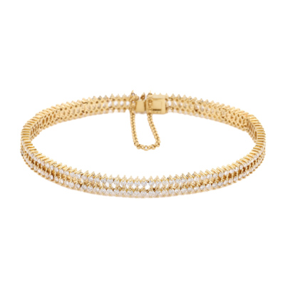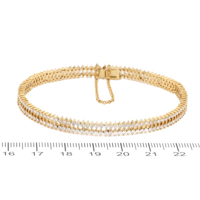 Diamond double row bracelet with round Natural Diamonds totalling 3.42ct (Estimated grading: HIJ SI-P1). 18ct yellow gold with safety chain of 6cm. Length: 18.5cm. Weight: 14.2g. With Valuation Certificate #421416 (Pre-owned)