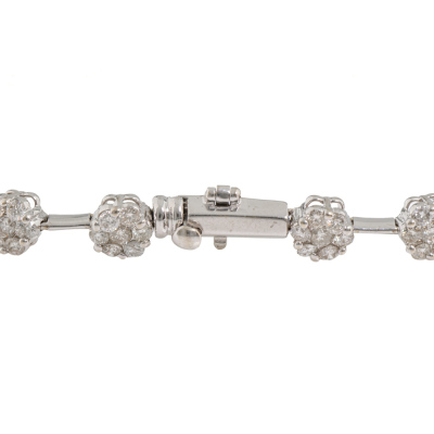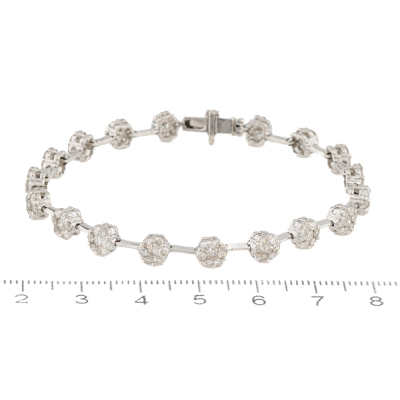 Diamond bracelet with round Natural Diamonds totalling 3.50ct (Estimated grading: J P2). 18ct white gold. Length: 17.5cm. Weight: 10.3g (Pre-owned)