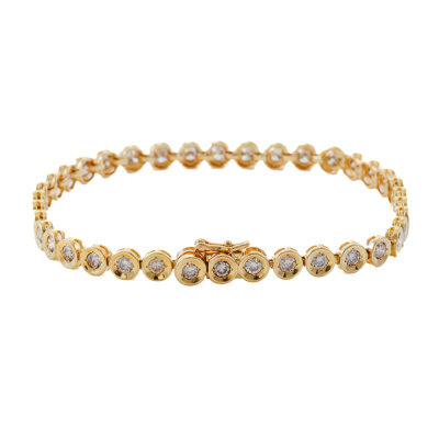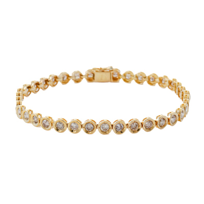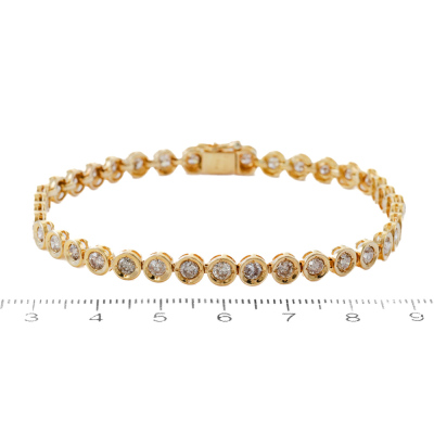 Diamond tennis bracelet with 38 round Natural Diamonds totalling 3.50ct (Estimated grading: Champagne SI-P1). 18ct yellow gold. Length: 19.5m. Weight: 13.2g. With Valuation Certificate #421411. (Pre-owned)