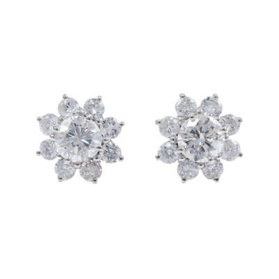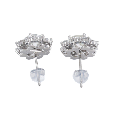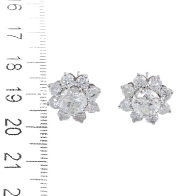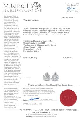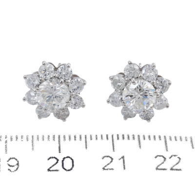 Diamond halo stud earrings with 2 centre round Natural Diamonds totalling 2.02ct (Estimated grading: G-H SI-P1) and surrounding round Natural Diamonds totalling 1.64ct (Estimated grading: H-I SI-P1). Platinum 900 with Platinum 900 & silicon backs. Weight: 5.1g. With Certificate #420425. (Preowned)
