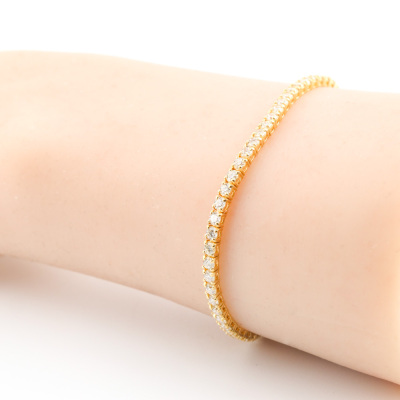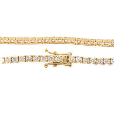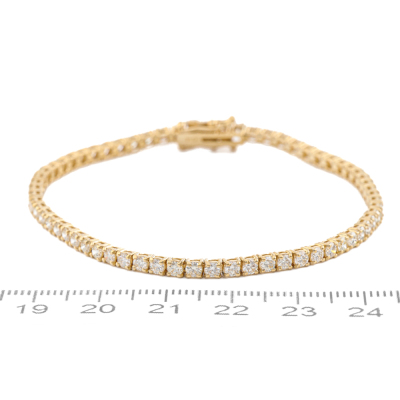 Diamond tennis bracelet with 64 round Natural Diamonds totalling 3.72ct (Estimated grading: I-J SI). 18ct yellow gold. Length: 18cm. Weight: 8.6g. With Valuation Certificate #420682. (New)