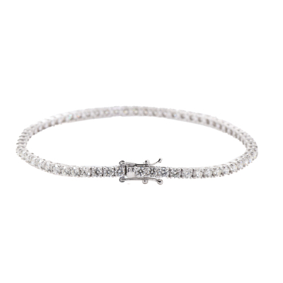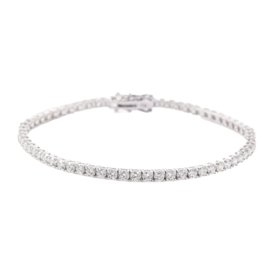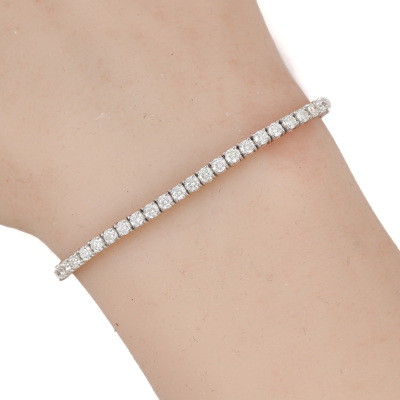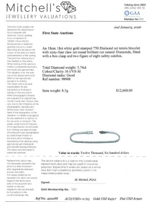 Diamond tennis bracelet with 64 round Natural Diamonds totalling 3.74ct (Estimated grading: HI VS-SI). 18ct white gold. Length: 18cm. Weight: 8.5g. With Valuation Certificate #422288.