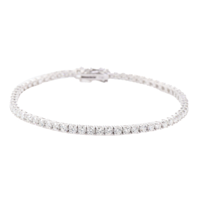Diamond tennis bracelet with 64 round Natural Diamonds totalling 3.84ct (Estimated grading: HI VS-SI). 18ct white gold. Length: 18cm. Weight: 8.6g. With Valuation Certificate #422289. (New)