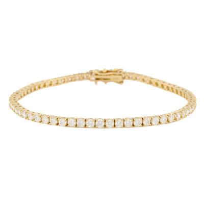 Diamond tennis bracelet with 64 round natural Diamonds totalling 3.87ct (Estimated grading: HIJ SI). 18ct yellow gold. Length: 18cm. Weight: 8.9g. With Valuation Certificate #422678.
