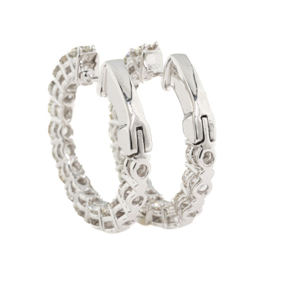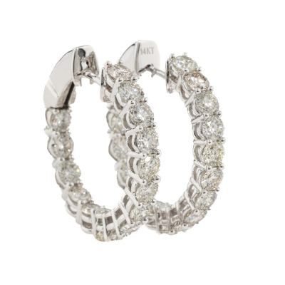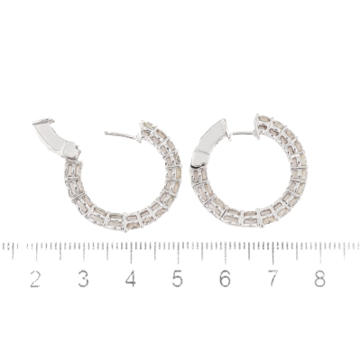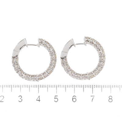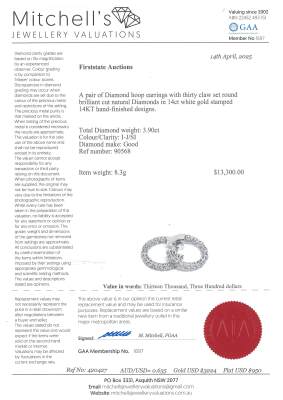 Inside-out Diamond hoop earrings with 30 round Natural Diamonds totalling 3.90ct (Estimated grading: I-J SI). Back of the hoop has the Diamonds set inside the hoop. 14ct white gold. Hoop outer diameter: 2.5cm. Width: 3.2mm. Weight: 8.3g. With Valuation Certificate #420427. (New).