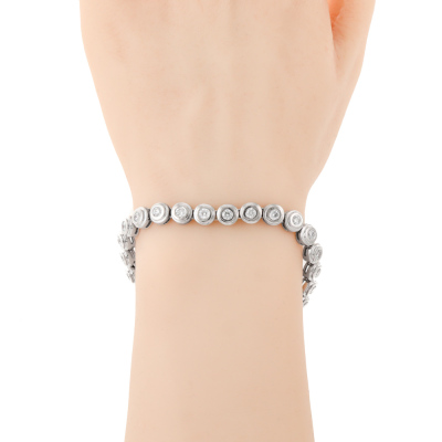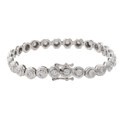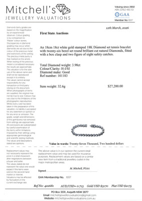 Diamond tennis bracelet with 26 round Natural Diamonds totalling approximately 3.90ct (Estimated grading: H-I SI). 18ct white gold. Length: 18cm With Valuation Certificate #422681.