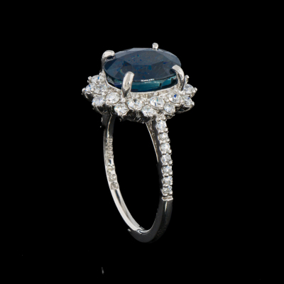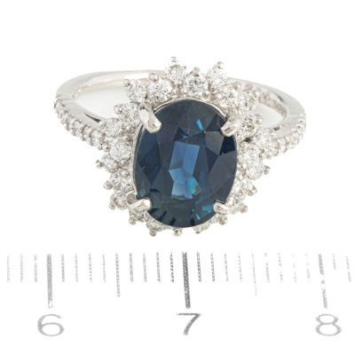 3.92ct Blue Sapphire & Diamond Ring AIGS
