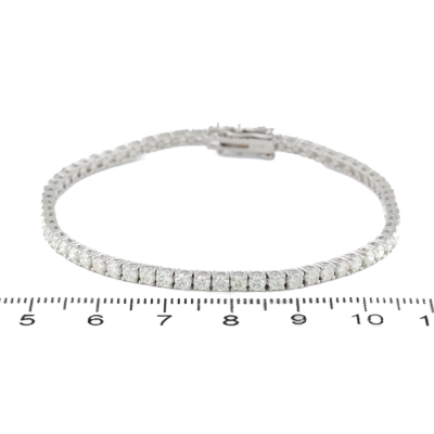 Diamond tennis bracelet with 64 round Natural Diamonds totalling 3.92ct (Estimated grading: H-I SI). 18ct white gold. Length: 18cm. Weight: 8.5g. With Valuation Certificate #420952. (New)