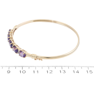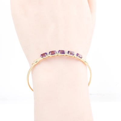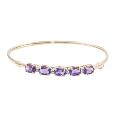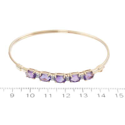 Amethyst and Diamond bangle with oval shape Natural Amethyst totalling 3.93ct and round Natural Diamonds totalling 0.04ct. 18ct yellow gold. Circumference: 17.5cm. Weight: 8.7g. (Pre-owned)