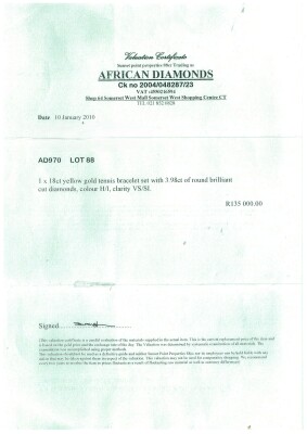 Diamond tennis bracelet with 66 round Natural Diamonds totalling 3.98ct (Estimated grading: H-I VS-SI). 18ct white gold. Length: 17.5cm. Weight: 8.7g. With a copy of Valuation Certificate dated 10/01/2010. (Pre-owned)