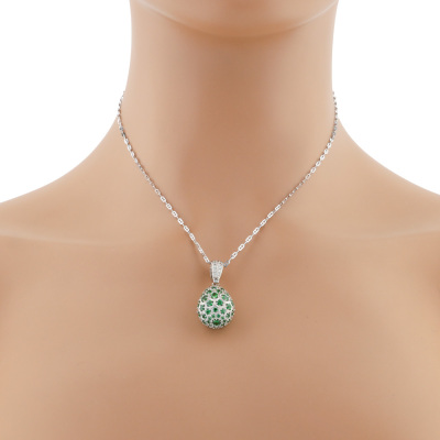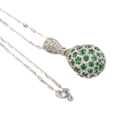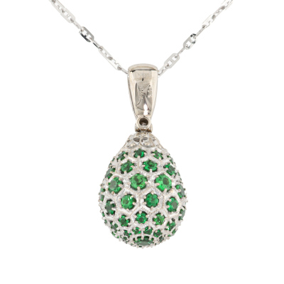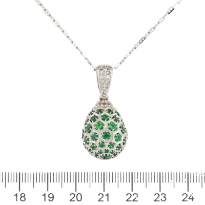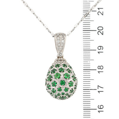 Tear drop pendant with round Natural Tsavorite Garnet totalling 4.00ct and round Natural Diamonds totalling 0.21ct. 18ct white gold with 18ct white gold 40cm chain. Weight 14.0g (Pre-owned)