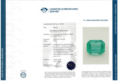 A loose emerald cut Natural Zambian Emerald of 4.22ct (With GSL Report #AA70375/1). Dimension: 10.70mm x 8.59mm x 6.03mm. (As new)