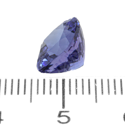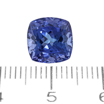 A loose cushion cut Natural Tanzanite of 4.35ct. Size 9.0mm x 9.0mm x 6.7mm.