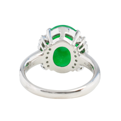 4.40ct Green Jade & Diamond Platinum Ring