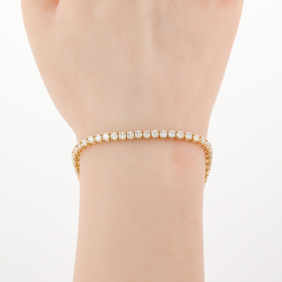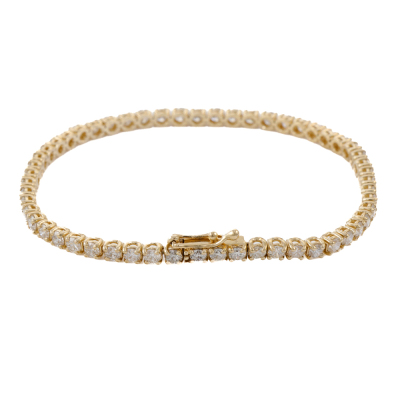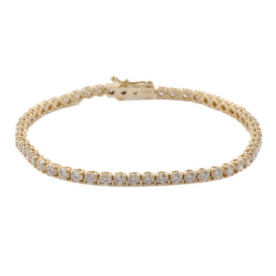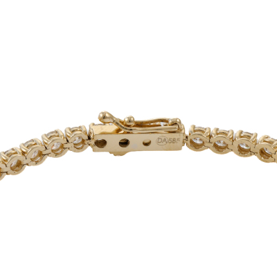 Diamond tennis bracelet with 55 round Natural Diamonds totalling approximately 4.50ct (Estimated grading: GHI SI-P1). 14ct yellow gold. Length: 18cm. Weight: 8.4g. (Pre-owned).