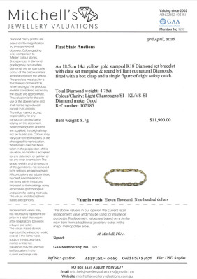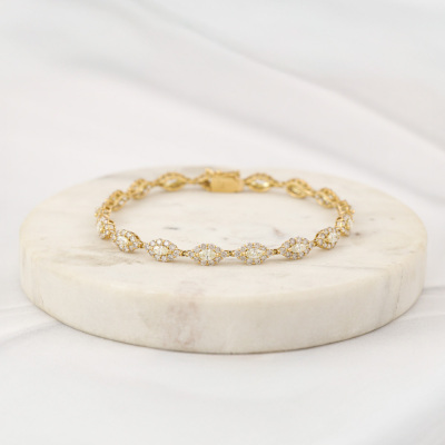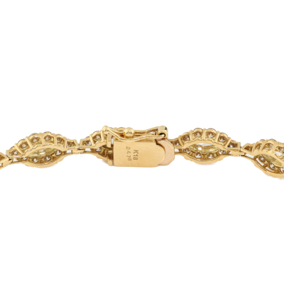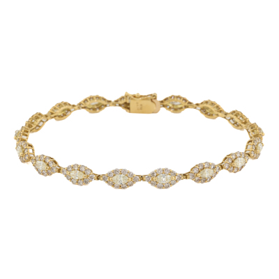 Diamond bracelet with round & marquise cut Natural Diamonds totalling 4.75ct (Estimated grading: Clarity: VS-SI, Colour: Light Champagne (round) & KL (Marquise)). 18ct yellow gold. Length: 18.5cm With Certificate #422826.
