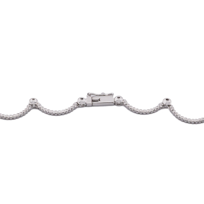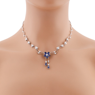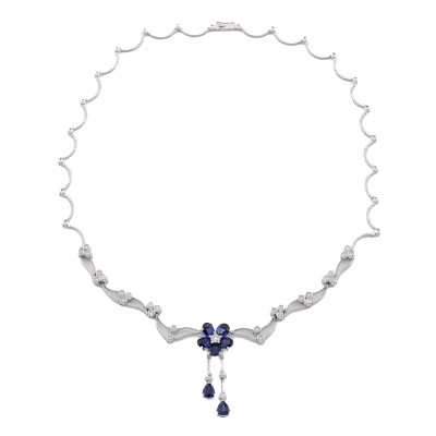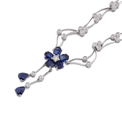 Sapphire and Diamond necklace with Pear & oval cut Natural Blue Sapphires totalling approximately 4.82ct and round Natural Diamonds totalling 1.15ct (Estimated grading: G-H SI). 18ct white gold. Length: 41cm. Weight: 22.0g.