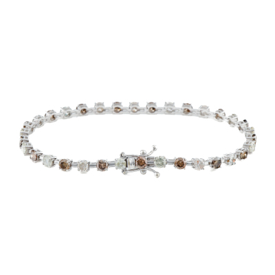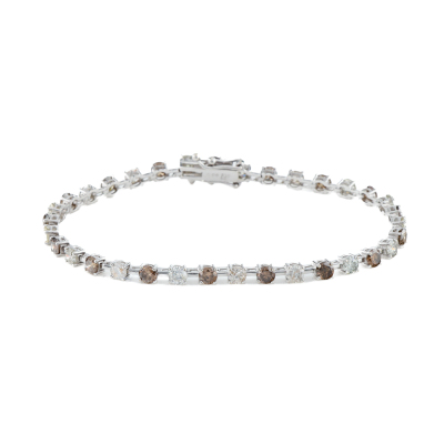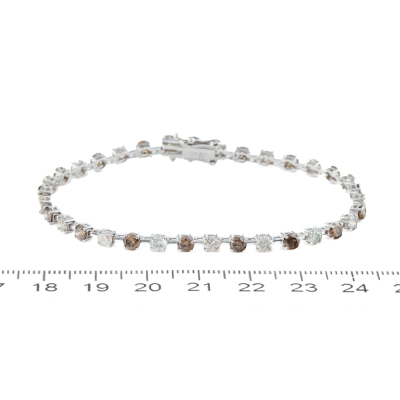 Diamond tennis bracelet with 34 round Brown and White Natural Diamond totalling 5.00ct (Estimated grading: Light - Dark Cognac & JKL P1-P2). 18ct white gold. Length: 18cm. Weight: 7.0g. (Pre-owned)