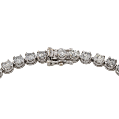 Diamond tennis bracelet with round Natural Diamonds totalling 5.00ct (Estimated grading: G-H P2-3). Platinum - 850 with 14ct white gold. Length: 19cm. Weight: 9.3g.