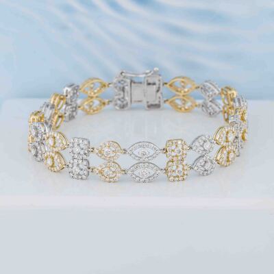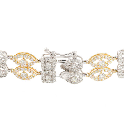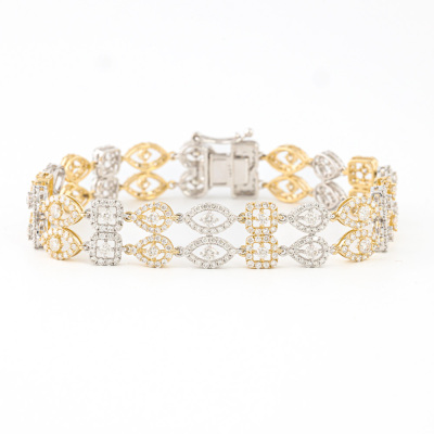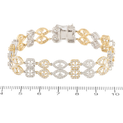 Diamond bracelet with 588 round Natural Diamonds totalling 5.02ct (Estimated grading: H-I SI). 14ct white and yellow gold. Length: 17cm. Weight: 13.5g. With Valuation Certificate #421160. (New)