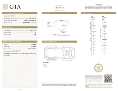 A loose square emerald cut natural Diamond of 5.03ct (with GIA report graded as E VS1 #5232700740). (New)