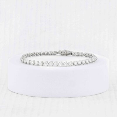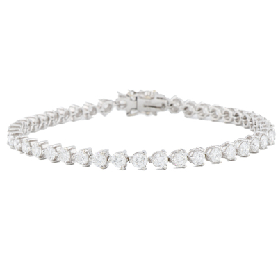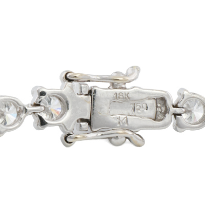 Diamond tennis bracelet with 44 round Natural Diamonds totalling approximately 5.40ct (Estimated grading: G VS). 18ct white gold. Length: 18cm. Weight: 10.3g. (Pre-owned)