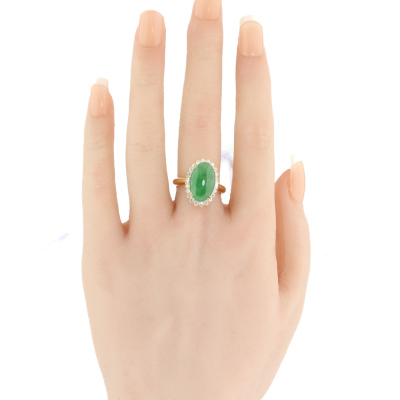 5.85ct Green Jadeite Jade & Diamond Ring