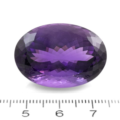 A Loose oval shape Amethyst of 61.20ct. Approximate dimensions: 29.0mm x 20.7mm x 17.0mm. (Pre-owned)