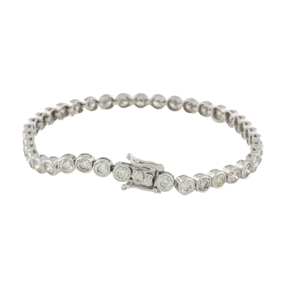 Diamond tennis bracelet with 40 round Natural Diamonds totalling approximately 6.31ct (Estimated grading: L VS-SI). 14ct white gold. Length: 18.5cm. Weight: 10.8g.
