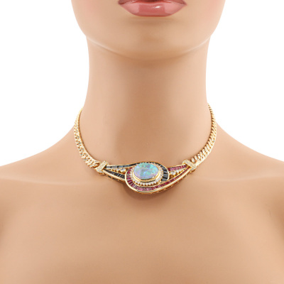 6.60ct Opal, Ruby, Sapphire & Diamond Necklace