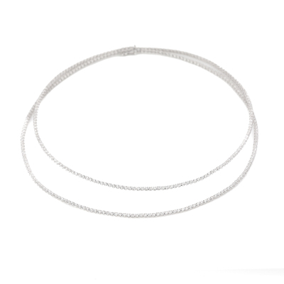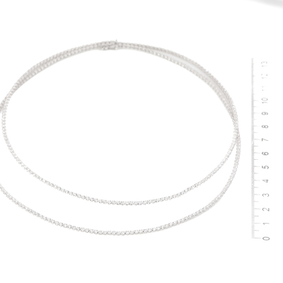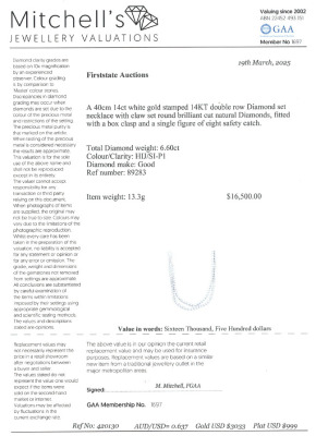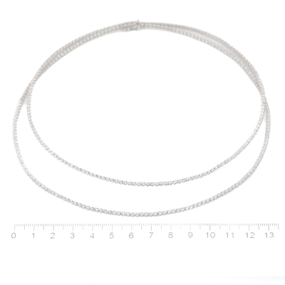Diamond Two row tennis necklace with 350 round Natural Diamonds totalling 6.60ct (Estimated grading: H-J SI-P1). 14ct white gold. Length: 40cm. Weight: 13.3g. With Valuation Certificate #420130. (New)